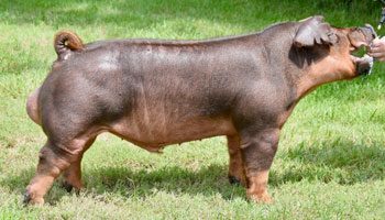 Over the last few years there’s been a strong emphasis put towards building one of the best Duroc sow herds in the country at Adam Beck & Family Showpigs. Time has been spent, trips taken and investments made to secure those elite females that have surfaced. The biggest splash made was with the purchase of the $35,000 Record Selling Duroc Gilt at the 2016 STC. This gilt was shown by Hadley Hendrickson, bred by Don R Smith, and sired by Indian Outlaw. She is also a littermate to Bear Claw, the $35,000 STC boar that stood here. Her impact in just 3 litters have been greatly felt; producing the $20,000 Sweethearts Gilt in 2017, several replacement daughters and most recently, Last Drop! After the run that He’s the One had been on, it was a no brainer to match that sow with him. From what we were told, this mating came out of the very last collection of He’s the One resulting in the origin of his name! Last Drop gets us excited with where we feel Durocs are headed and where we think he can take us! So balanced and fault free in his skeletal make up. Awesome pattern from the side that is dead level from blade to hip with that trendy, slick look up front. Square and true off both ends of his skeleton with great length and agility to his stride. Stout constructed with big bones and big feet. Muscle shape is cool and expressive when you get on top of him. Frame size and length of body are ideal and tie him together nicely. We feel this one is right for the times and can make those Duroc shows hogs that are easy on the eyes. Keep your red program good until the Last Drop!!!