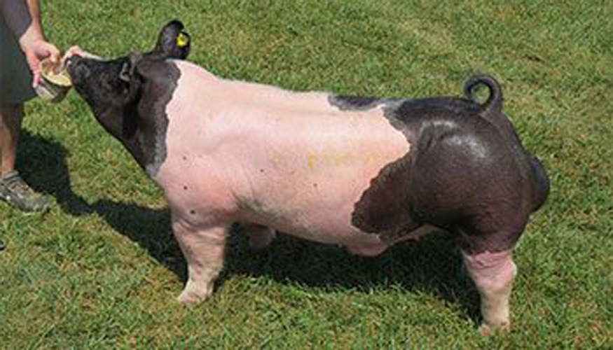 The Crossbred Classic is the show we look forward to the most every year due to the depth of quality found in the boars that show up there. We headed there this year with the intentions of laying in the final key pieces to our Fall 2013 set and when Dig Deep hit the ring we knew he was one we needed to own! We have bought Porter-O’Bannon boars before and they flat generate, so that excited us even more. Dig Deep went on to be named the Reserve Overall Champion Boar. We feel very lucky to own this one for $35,000 as we felt we would have to dig deeper in our pockets to bring this one to Clayton due to his unparalleled balance and build. Dig Deep is one that is square both coming and going and extra good on his feet and legs. For being stress negative and out of a pure Hampshire boar, we love his shape and muscle expression and anticipation of siring consistent, complete hogs that could go out and win shows! This one gives you and extra cool look to his front end while being so square and level down his top. Pedigree runs really deep here too as his mother is a littermate to the $11,500 Overall Champion Weanling Male and $7,000 Light Cross Champion Weanling Female at the 2010 Fall Classic. His grandmother is extra special in her own right as she is the mother of the 2013 WPX Jr. Show Champion Crossbred Gilt and is a littermate to J-LO (mother of Rename) at Brinning’s, as well as the popular boar Swamp Fever at Carl Kent’s. Special thanks to our good friend Bruce Kaufman on seeing the power this sire has and teaming up with us to own him! If you’re looking for the boar to make those easy selling babies that feed out well and win shows then make sure you Dig Deep!!!