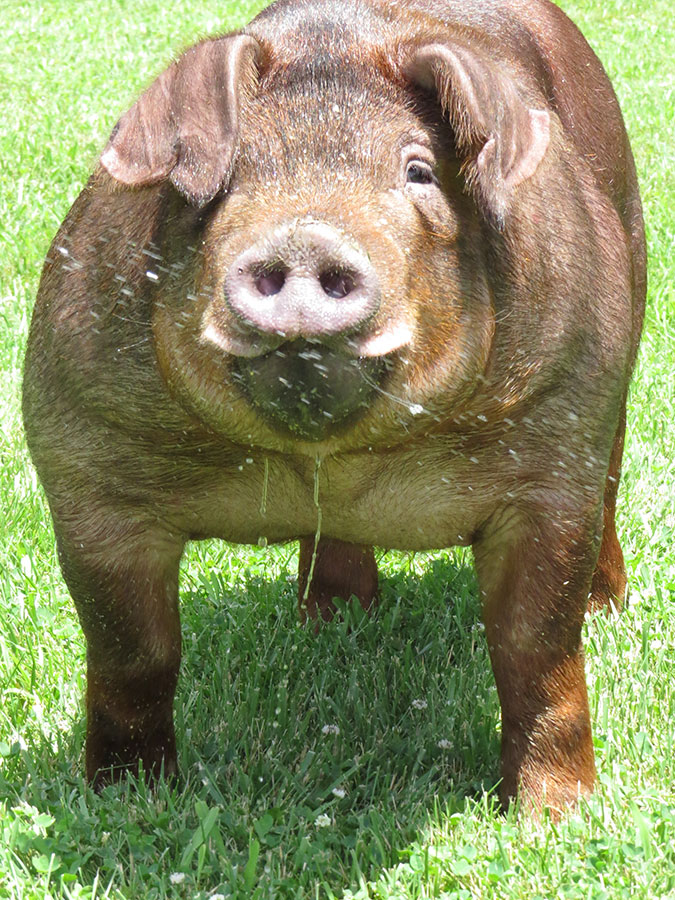 Most people will spend their entire lives breeding hogs trying to make that one freak show breeding piece that goes and sells for a lot of money; while others will spend their lives just breeding good hogs trying to make their herds better in terms of consistency, productivity, and durability. Guys that take the latter approach are often the ones that consistently find the winner’s circle and often help improve and move that breed forward. When you travel to the Fordice Family’s farm the latter approach bleeds from there, passionately. Marty, Lee, Cory, and the rest of the crew there devote their lives to being successful in the Duroc breed. You can see it on their faces and hear it in their voices when you visit with them about their hogs. When Marty called us and told us that they had a pair of Light ‘Em Up boars that we needed to go see, we didn’t waste much time in doing so. When he drove LIFETIME out of the barn he floored us in the way he combined the Light ‘Em Up power and mass and the Fordice flexibility and mobility, look and design. He had an incredibly flexible skeleton that was square and wide both coming and going while possessing those extras in terms of rib shape and dimension along with lots of muscle volume down his top and back into his hip. He came at us with a huge chest floor and from the side gave us that tall shouldered, extra show hog look that can be hard to find in this breed. They drove this hog in the yard for a long time as we discussed and analyzed him and he never once took a bad step or got tight in any joint. Yes, LIFETIME is a littermate to the highly successful Jaxon Parmley show gilt that was Reserve Champion Duroc and 3rd Overall Gilt at the 2014 NJSS and also the Grand Champion Gilt & Champion Duroc at the Indiana State Fair Jr. Show. The cool thing about LIFETIME, for us, is the mass number of key foundation sows his mom has back in her pedigree. She is a Flash Drive X Integrity and a littermate to the 5th Overall & Champion Duroc Gilt at the 2013 Indiana State Fair Jr. Show. That Integrity sow is 14-11 and along with her and 14-10 (Magnitude’s Mom) they are the key foundation sows that have generated a lot of banners for the Fordice family. Without going way back generation after generation of the sows behind LIFETIME, just know that he will be a flat generator and a token for the term, behind every great boar are great sows! Marty and Lee told us that day we were there that they had spent a LIFETIME trying to make a boar like this one and we sure are glad they did. Don’t get left behind and miss out on trying to build that “one”, just try to make better hogs and do it with LIFETIME!!!