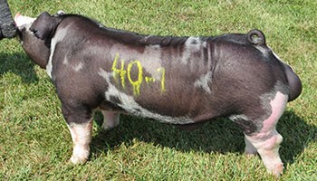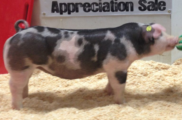 We went to the Indiana State Fair Spot Show with the goal in mind of finding a big time stress carrier Spot boar of a different pedigree than the popular Bullfrog and Tadpole lines that have worked so well for us here in years past. When TWO STROKE hit the ring and we saw he was a carrier, we knew we had found our prize. He went on to easily be named Champion Spot Boar and given the popularity that spot boars at Indy normally have. We enlisted the help of some of the really good spot breeders to team up with us to own TWO STROKE. Much to our surprise, when we held our number up at only $20,000 he was coming home with us. We are thrilled to have Corya, Arthur, Friddle, Moore, and Emenhiser as partners on this monster and look forward to what he will do on their sows! TWO STROKE is one impressive specimen. He is gigantic legged, busted open in his skeleton, tall about his shoulder with an enormous expressive top. This one comes at you like a beast with a huge chest and leaves with a big, shapely hip. TWO STROKE is moderate in his build, wide in his base, and extremely athletic in his stride. To top things off, he shares the same mother as Camo that has been quite successful for Triple B! We have studied a lot of spotted boars over the years and never have we had one hit us as hard as TWO STROKE does! No matter his color or ear set we feel TWO STROKE was one of the best boars offered all summer and we would like to thank Chad & Misty Hill from Texas on bringing this mammoth to Indy and giving us the opportunity to own him! Whether you want to make elite spot barrows or dynamite spotted gilts we feel that the only motor you should be driving is a TWO STROKE!!!