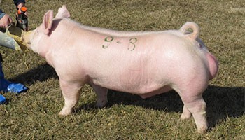 The Southwest Type Conference in Belton, Texas has always treated us well since our entry into the boar stud business in terms of being a show that is loaded with quality. We have made some good purchases there over the years that have yielded big time stud boars for us. This year was no different and came via the Yorkshire show. This Take Notice X Sunset son from Rodibaugh hit us hard early in the day. He presented himself with that mass and dimension typically found in Take Notice and tied that in with an awesome look and flawless skeleton. He went on to be named Champion Yorkshire Boar and we knew he was one we needed to have. Special thanks for Crone Farms for teaming up with us to bring this one back to IN. NOTICE ME excels in the way he combines mass, dimension, look, and build in a sound structured package. This one has huge kind of rib cage with great shape and expression down his back. He is a tall fronted, good looking boar that is level from blade to hip. At the ground he is square and mobile. We feel this is one that will make those really good kind of Yorkshire show hogs that have to extras and can go the extra mile. Get yourself noticed in the big rings with NOTICE ME!!!